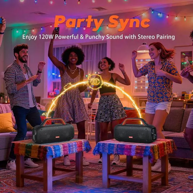 TWS Expandable Sound: Sync two speakers wirelessly for powerful stereo separation. 360° immersive audio for gatherings, outdoor fun, or your personal concert.