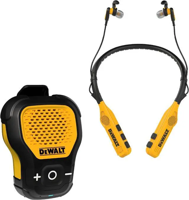 Duo Audio Solution: Includes DEWALT Wearable Clip-On Bluetooth Speaker and 2-in-1 Neckband Bluetooth Headphones