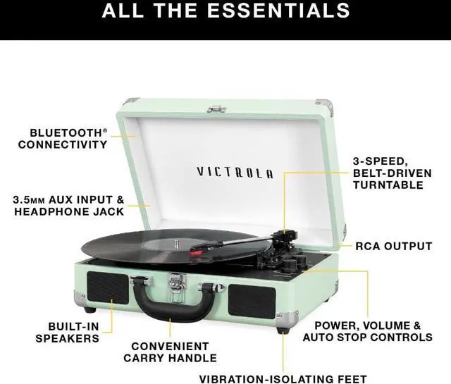 TAKE YOUR TUNES ANYWHERE - Housed in a vintage suitcase with an easy carry handle, Victrola's blend of retro and contemporary design give you the ultimate flexibility to listen to music where you want and how you want a great choice for vinyl lovers. Clean only with a dry cloth