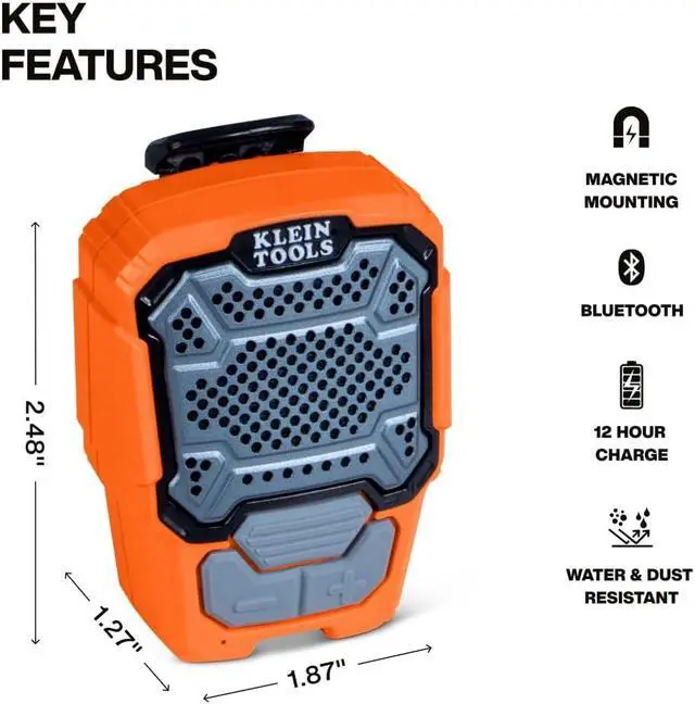 Klein Tools Wearable Bluetooth Speaker is a rugged, hands-free audio solution engineered for skilled trades and active consumers. Developed in collaboration with HVAC techs, electricians, and outdoor gear testers, it addresses the real-world need for portable sound without compromising mobility. Its magnetic clip mount, IP67 waterproof, and Bluetooth connectivity were all shaped by field feedback, making it the go-to audio companion for noisy jobsites, solo installs and weekend adventures. For more than 160 years, Klein Tools has manufactured premium-quality, professional-grade hand tools that deliver the performance, durability and precision needed to get the job done right. Our family of engineers, workers and craftsman continue to put six generations of expertise into every tool we create by using only the highest quality materials, superior workmanship, and keeping manufacturing as close to home as we can. Klein isn't just the name of our company, it's also our family name. And since we're an American company that's family-owned and family-run, you know you can count on us to be here tomorrow. Klein Tools doesn't just make great products, we make great products that stand up to the demands of the professionals who use them every day ... Since 1857.