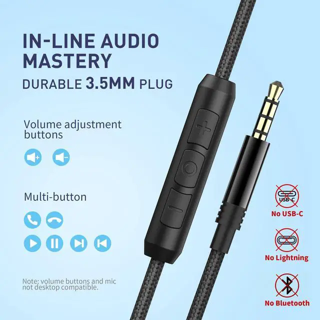 Navigate tracks, adjust volume, and handle calls with intuitive buttons. Note: Mic&volume control are not supported with computers.