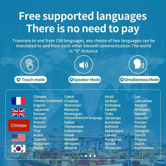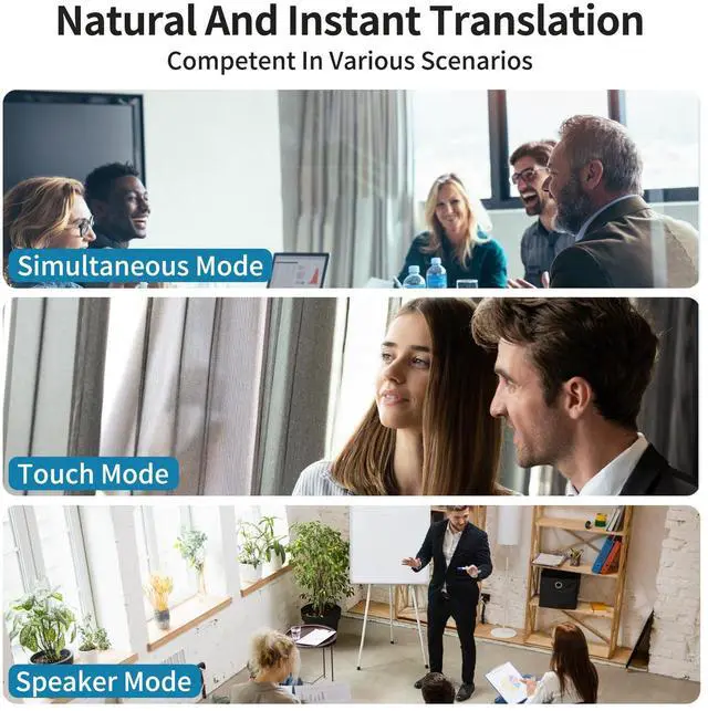 - Multiple translation modes (touch mode, external mode, free speech mode).