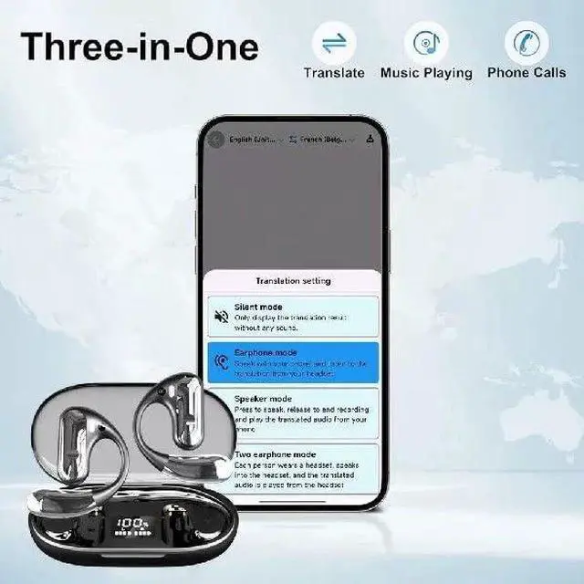 Step 1: Bluetooth connection and phone pairing Open the Bluetooth settings of the phone and select the corresponding headset model in the device list to complete the pairing . Step 2: APP download and installation Scan the QR code in the product package to complete the APP download . Enter the APP, first register and log in to the account using the email address. Note that this is the only link identification code for using the translation. Please confirm that the current link is the purchased translation headset, and then scan the code on the manual to bind the translation APP The language translator Earbuds supports two-way real-time voice translation countries/regions.144 languages are translated to each other, and the languages cover the world. Albanian (Albania) Arabic (Algeria) Arabic (UAE) Arabic (Oman) Arabic (Egypt) Arabic (State of Palestine) Arabic (Bahrain) Arabic (Qatar) Arabic (Kuwait) Arabic (Lebanon) Arabic (Morocco) Arabic (Saudi Arabia) Arabic (Tunisia) Arabic (Yemen) Arabic (Iraq) Arabic (Israel) Arabic (Jordan) Amharic Azerbaijani Estonian (Estonia) Basque Bulgarian Icelandic Polish Bosnian (Bosnia and Herzegovina) Persian Danish German German (Austria) German (Switzerland) Russian French French (Belgium) French (Canada) French (Switzerland) Filipino Finnish Khmer (Cambodia) Georgian Gujarati (India) Kazakh (Kazakhstan) Korean Dutch Dutch (Belgium) Galician (Spanish) Catalan Czech Kannada (India) Croatian m Latvian Lao Lithuanian Romanian Marathi (India) Malayalam (India) Malay Macedonian (North Macedonia) Mongolian (Mongolia) Bengali Bengali (India) Burmese Afrikaans (South Africa) Nepali Norwegian Punjabi (Golumuch, Indian) Portuguese Portuguese (Brazil) Mandarin Japanese Swedish Serbian Sinhala (Sri Lanka) Slovak Slovenian Swahili (Kenya) Swahili (Tanzania) Taiwanese Telugu (India) Tamil (Malaysia) Tamil (Sri Lanka) Tamil (Singapore) Tamil (India) Thai Turkish Urdu Urdu (India) Ukrainian Uzbek (Uzbekistan) Hebrew Greek Spanish Spanish (Argentina) Spanish (Paraguay) Spanish (Panama) Spanish (Puerto Rico) Spanish (Bolivia) Spanish (Dominican Republic) Spanish (Ecuador) Spanish (Colombia) Spanish (Costa Rica) Spanish (Honduras) Spanish (United States) Spanish (Peru) Spanish (Mexico) Spanish (Nicaragua) Spanish (El Salvador) Spanish (Guatemala) Spanish (Venezuela) Spanish (Uruguay) Spanish (Chile) Hungarian Sunda (Indonesia) Armenian Italian Italian (Switzerland) Hindi (India) Indonesian English (Ireland) English (Australia) English (Pakistan) English (Philippines) English (Canada) English (Ghana) English (Kenya) English (US) English (South Africa) English (Nigeria) English (Tanzania) English (Hong Kong) English (Singapore) English (New Zealand) English (India) English (UK)