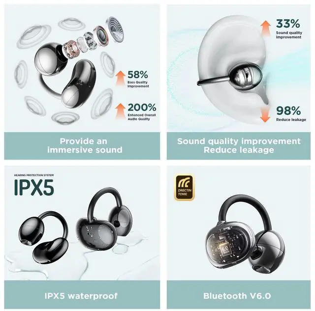 Multifunctional clip on earbuds: The Open Ear clip design ensures comfortable all-day wear and portability, keeping you connected to languages, entertainment and communication anywhere.The open ear headphones also combine multilingual translation, 3D ergonomic design, and intelligent noise cancelling call function.