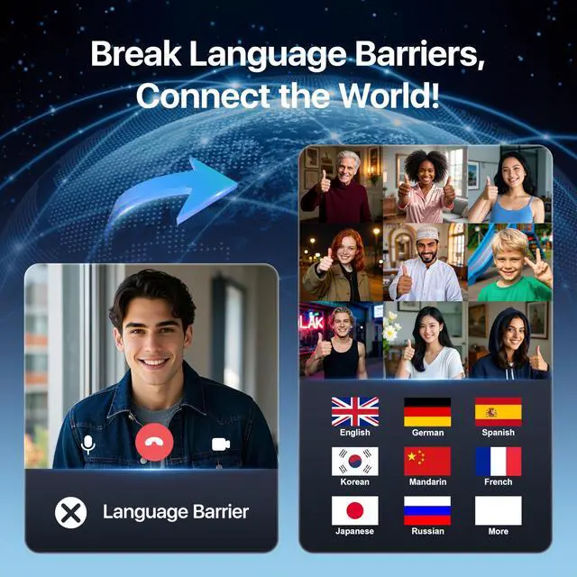 Supports real-time bidirectional translation for 144 languages (English, Mandarin, Spanish, French, German, Japanese, Korean, etc.). Identify the main accents and dialects to ensure smooth communication.