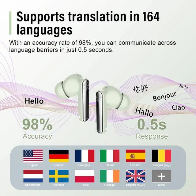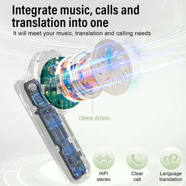 Three-in-One Function & HD Stereo: Our translation earbuds combine translation, music playback, and phone calls into one versatile device, perfect for both work and daily life. Featuring a 13mm Hi-Fi dynamic driver, they deliver immersive sound with rich bass and clear treble. ENC noise cancellation filters 90% of background noise. Whether it is business negotiations, traveling abroad, language learning, daily calls or listening to music, it can provide you with the ultimate experience