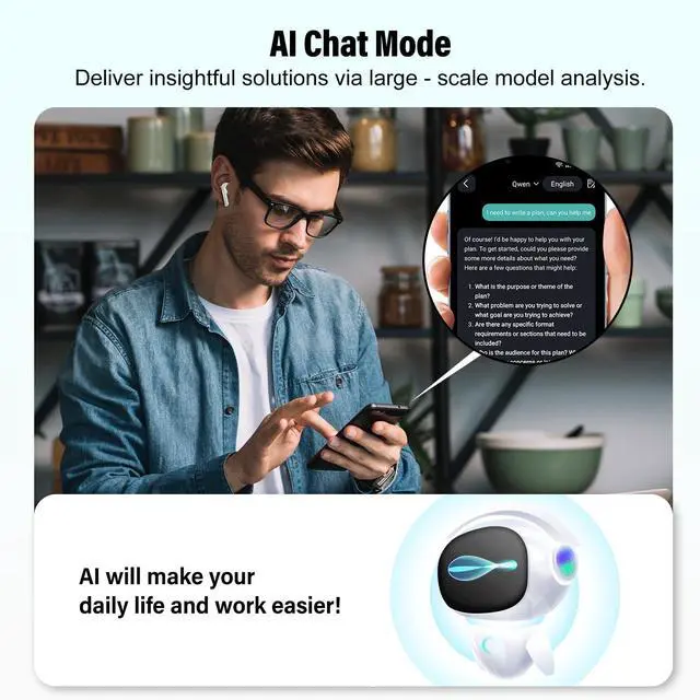 Audio & Video Call Translation: Our translator earbuds feature advanced audio and video call translation technology for real-time language conversion, enabling seamless cross-lingual communication. Whether youre engaging with global clients at an international conference or having a video chat with overseas friends, these earbuds eliminate language barriers instantly. Enjoy smooth, efficient conversations to enhance both work productivity and social connections