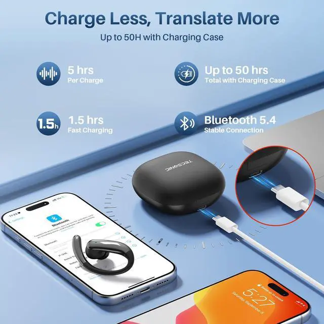 The earbuds support two-way translation in 164 languages and accents. Accuracy depends on network quality, background noise, and speaking clarity.