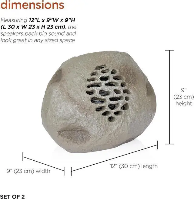 LANDSCAPE INTEGRATION: Realistic Brown rock sculpture design naturally blends into your garden or deck décor; compact 9 inch size delivers powerful sound without being visually intrusive.