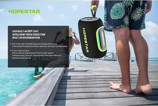 The HOPESTAR H58 speaker features a built-in DSP chip that optimizes sound performance for crisp, clear audio. This advanced technology delivers balanced sound with enhanced bass and precise treble, ensuring a rich listening experience across all types of music.