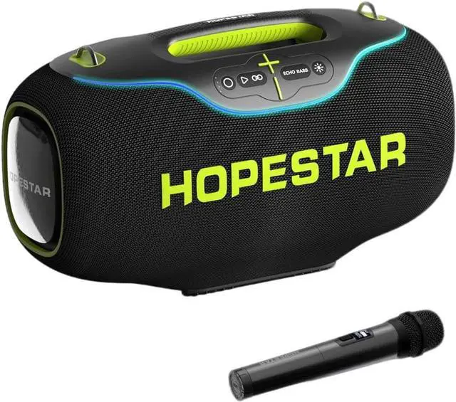 350W Wireless Bluetooth Speaker, 24Hrs Playtime, RGB Lights, Mic with EQ & Volume Control, 10M Range, Hopestar Series (Black)