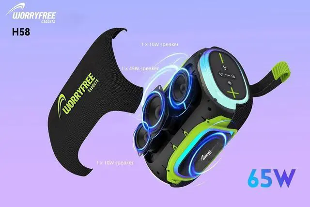 Powerful Audio Performance: This 65W wireless speaker delivers booming, room-filling sound with deep bass and crystal-clear highs.