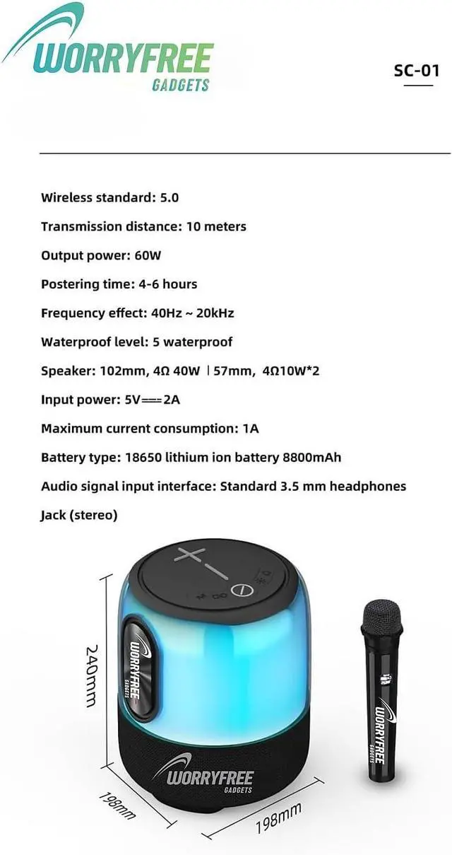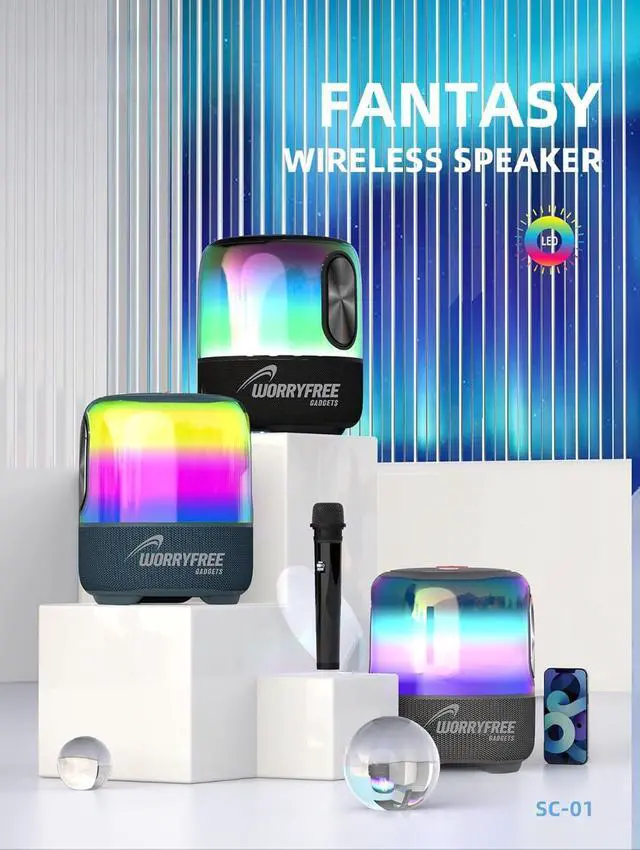 • Ambient Lighting: The speaker features a mesmerizing LED light display that creates a vibrant ambiance. Multiple Functions: Supports Bluetooth, TWS connection, AUX-In, USB pen drive, Micro SD card, hands-free calls, FM radio, and various RGB light modes.