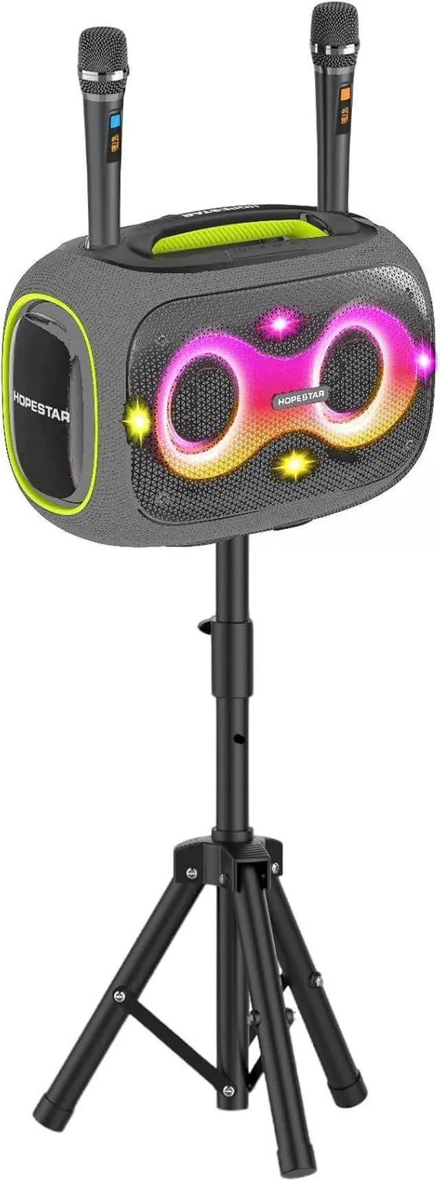 • PORTABLE SETUP: Comes with a tripod stand for optimal sound projection and easy placement at any venue