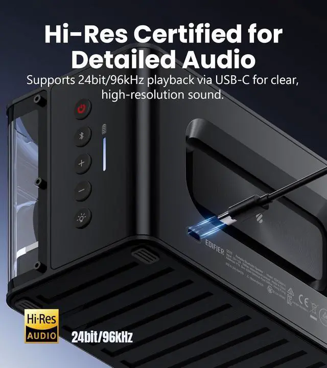 25W Dynamic SoundPowered by 25W RMS, this Bluetooth speaker, enhanced by a Class-D amplifier, fills any space with dynamic audio. It balances delicate soft passages and intense loud sections, perfect for all types of content.