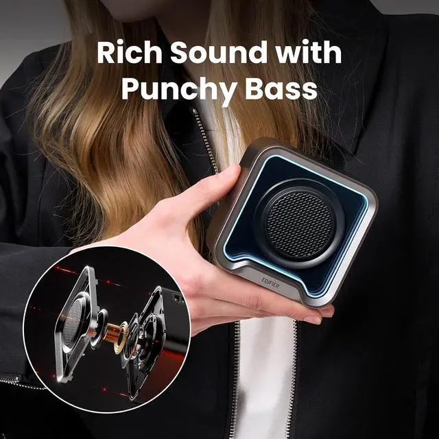 Edifier Portable Bluetooth Speaker, IP67 Waterproof and Dustproof with Deep Bass, Built-in Microphone 12H Playtime Bluetooth 6.0, Ambient Light for Outdoor Camping Travel Home Office - Black