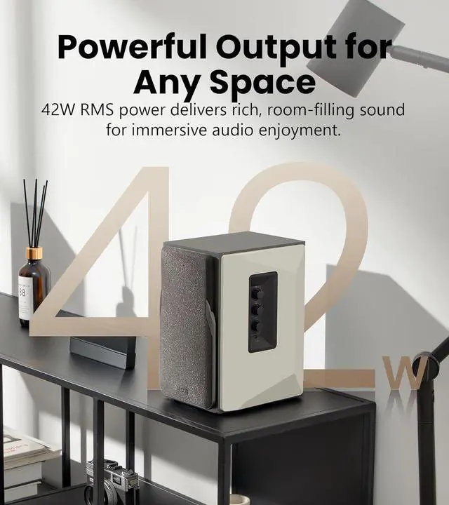 UNMATCHED SOUND QUALITY - A 1-inch tweeter and 4-inch woofer with a Class-D amplifier and 42W RMS total power output.