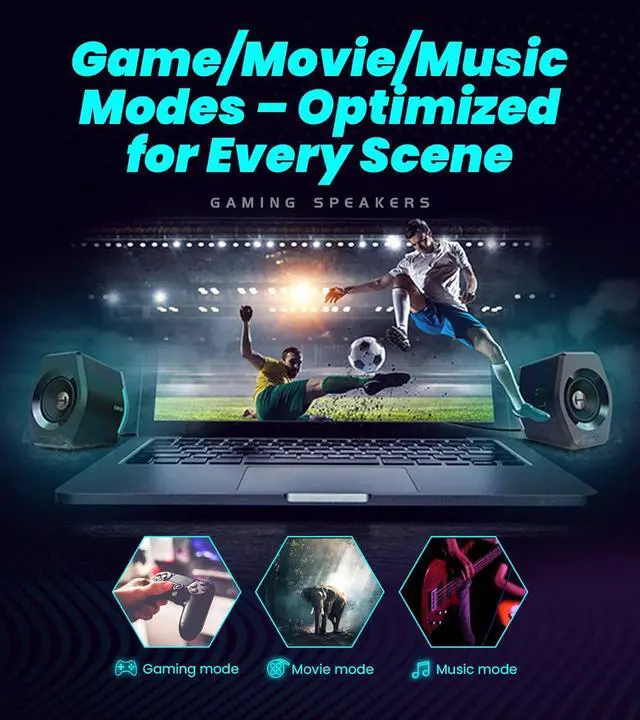Immersive Gaming Sound: 16W+16W peak power with 2.75" full-range drivers delivers explosive bass and crisp audio for precise in-game positioning.