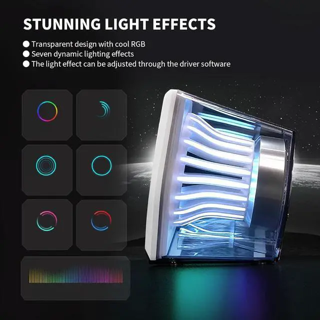 7 Dynamic lighting effects: Built-in 7 dynamic lighting effect modes can be adjusted by downloading the HECATE Gaming Center driver software. Each speaker is equipped with 20 light strips and 100 full-color light beads. The brand-new TempoFlow flowing light dynamic lighting effect technology ensures sound and light synchronization.