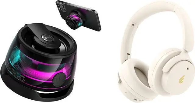 Core Functional Highlights: The G200 features strong magnetic base compatible with MagSafe iPhones, working as a stable phone stand for streaming and video calls; the H9 headphones adopt hybrid active noise cancellation with 4 ANC modes, achieving up to -43dB noise reduction depth to block out unwanted noise and keep you focused