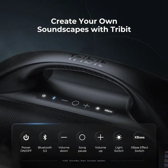 Incredible 30H Playtime: Thanks to Tribit's Runstretch technology, this wireless speaker could provide 30 hours of dynamic sound; Whether it's a family barbeque, or a camping trip - day or night with the Tribit StormBox Blast.