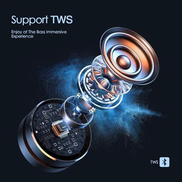 Excellent Combination Experience - The Docooler bone conduction speakers are connected by bluetooth (Turn it on, and then connect the bluetooth, the speaker will work). Two small speakers bluetooth can be paird automatically, which will give True wireless stereo. Final, We highly recommend you to use two interconnected small speakers to achieve true wireless stereo. You can have 2.0 surround sound experience since this innovative Bluetooth enabled device is also TWS enabled.