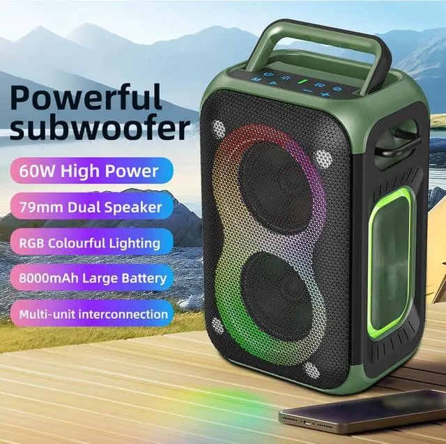 Powerful Speaker: A 60W high-power speaker with strong bass and RGB color light effects, providing an immersive music experience, feels like being in a live scene.