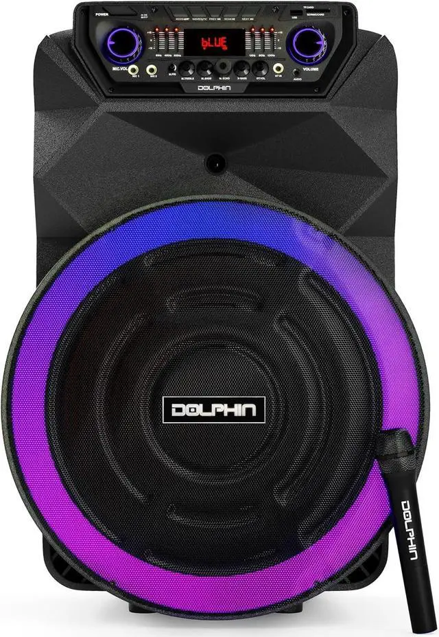 POWERFUL Deep Bass & Crisp Sound: With a peak power of 120 RMS Watt and an 18-inch woofer, the Dolphin SP-18RBT delivers room-shaking bass and crystal-clear sound, ensuring every note and beat of your music is heard in stunning clarity, making it perfect for parties, DJ events, and live performances.