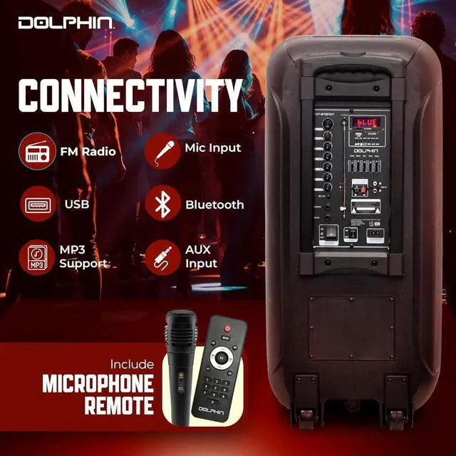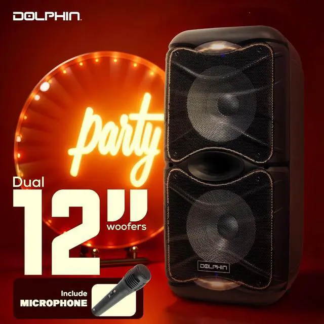 RECHARGEABLE SPEAKER: Bluetooth Portable DJ Speaker with dual 12" woofers with strong AlNiCo magnets for accurate bass thumping sound. Can be used outdoors, speaker with wheels for easy portability.