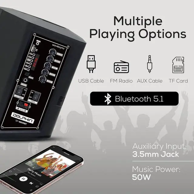 CUSTOMIZE Audio Settings: With volume, treble, and bass controls, dual channel sound board, and various input options including Bluetooth, USB, TF, FM, auxiliary, and a microphone jack with volume and echo controls. You have the ability to fine-tune your audio to your exact preferences.