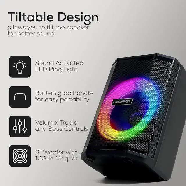 PARTY MODE: Get the party started with a sound-activated LED ring light, adding an exciting visual element to your audio experience.