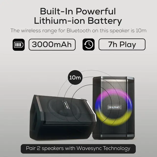 WAVESYNC Technology: Boost your audio experience by pairing two(SP-880RBT) speakers for an even more powerful, high-quality sound output.