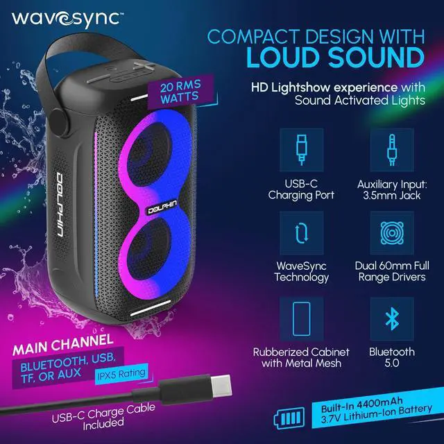 Compact Design: Experience big, booming sound from this portable party speaker, all packed into a compact and portable design. Take the party with you wherever you go!