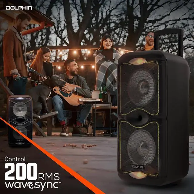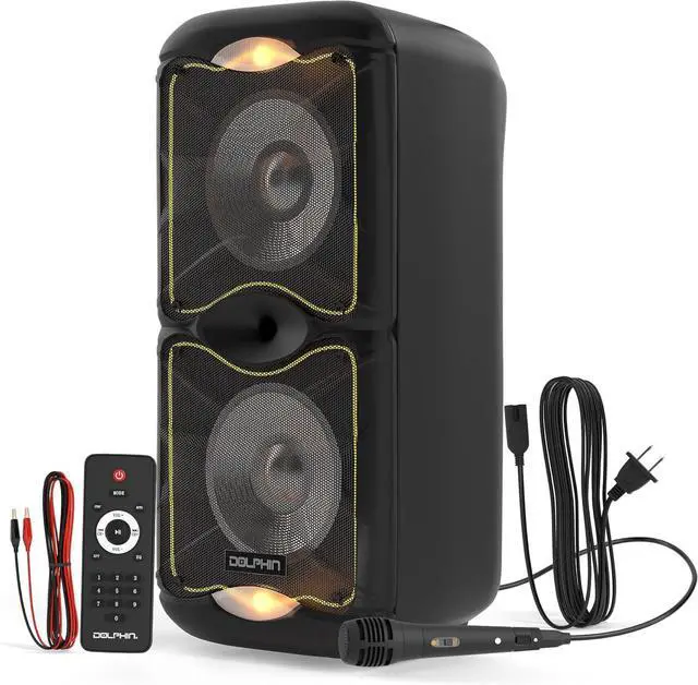 RECHARGEABLE SPEAKER: Bluetooth Portable DJ Speaker with dual 12" woofers with strong AlNiCo magnets for accurate bass thumping sound. Can be used outdoors, speaker with wheels for easy portability.