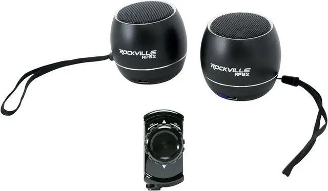 Features of RPB3-BLACK: Pair Rockville RPB3-BLACK Handheld Wireless Linking Portable Bluetooth Speakers. Mini Speaker with great frequency range and balanced sound. The 2 speakers link wirelessly together (TWS - True wireless stereo). Built out of high quality aluminum. Bluetooth Version 5.0. Hands Free phone calls using the built in microphone. Built-in SD Card Slot. On android phones, you can use the speaker as a selfie remote.