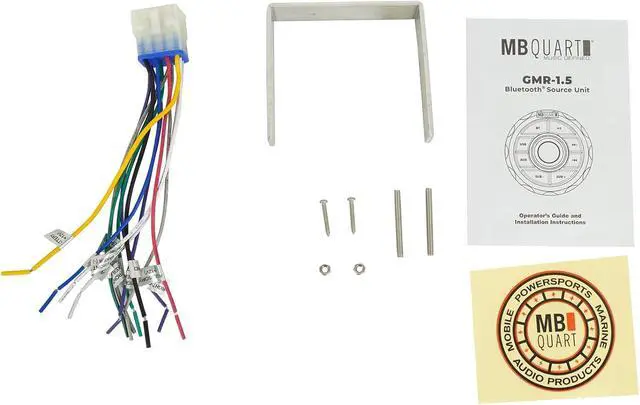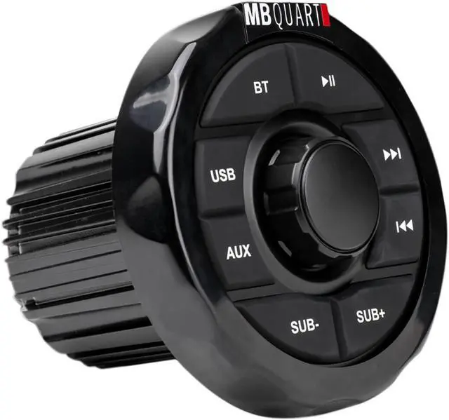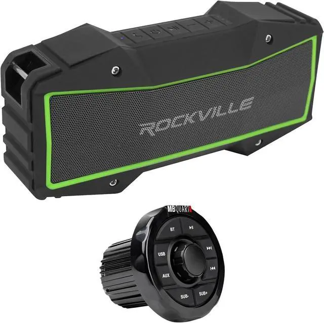 Package Includes: (1) MB Quart GMR-1.5B Marine Gauge Receiver w/Bluetooth/USB/Aux For ATV/UTV/RZR. (1) Rockville ROCK EVERYWHERE Portable Bluetooth Speaker/Waterproof/Wireless Link. Specifications: Weight: 1.85 lbs. Dimensions: 5.95 × 5.95 × 6.82 in. Type: Source Unit. Brand: MB Quart. Series: Nautic. Category: Marine, Powersports, RV. Condition: New. Color: Black. Warranty: 1 Year. IPX Rating: IPX67. Compatible Vehicles: Universal. Source Unit Bluetooth Range (ft): 32