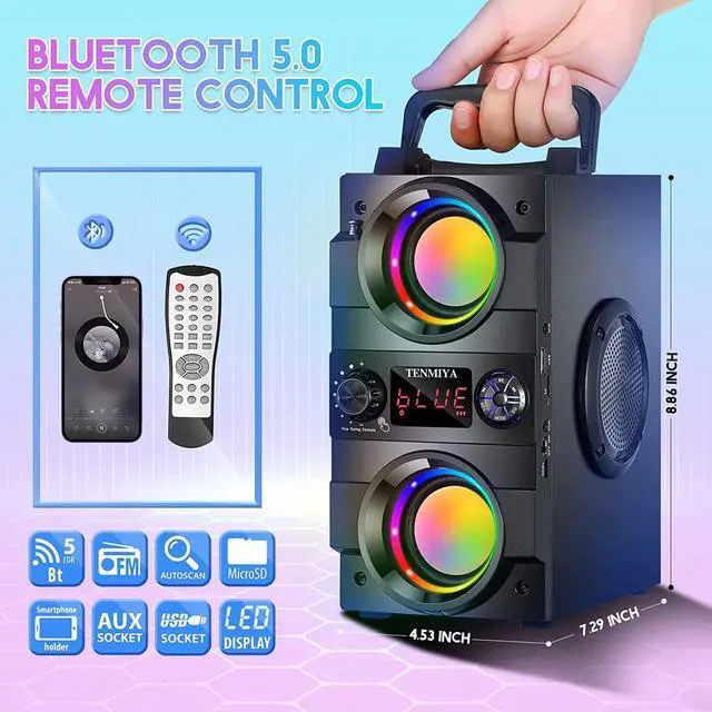 Bluetooth Speaker, 40W(60W Peak) Portable Bluetooth Speakers With Lights Wireless Stereo Rich Bass Speakers With Double Subwoofer Outdoor/Indoor Party Speakers Support Fm Radio Remote Control Aux Eq