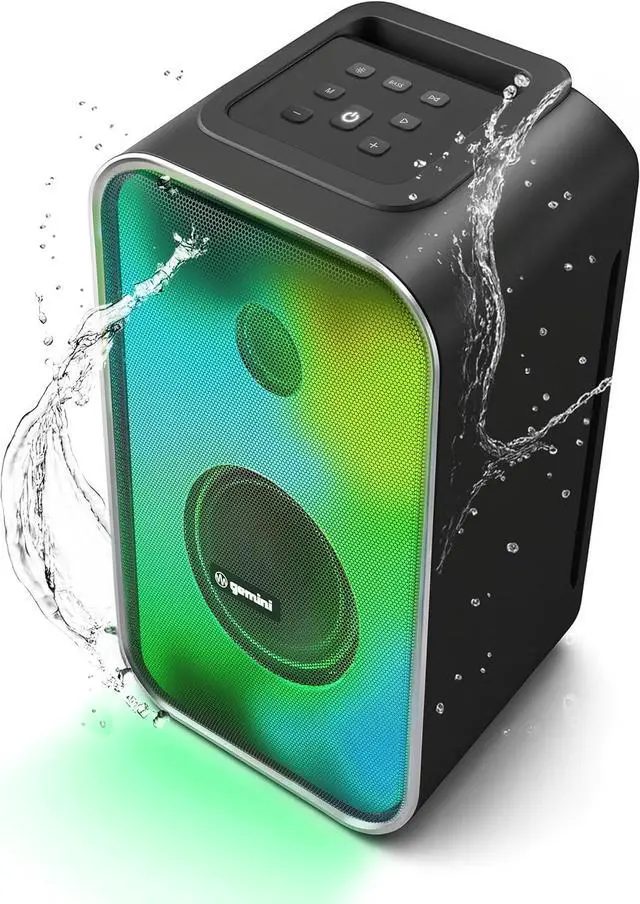 IPX5 WATER-RESISTANT DESIGN Take the party poolside with an IPX5 water-resistant rating that protects against splashes and rain. The rugged ABS cabinet features a built-in handle, making it the ideal portable choice for beach trips and outdoor adventures.
