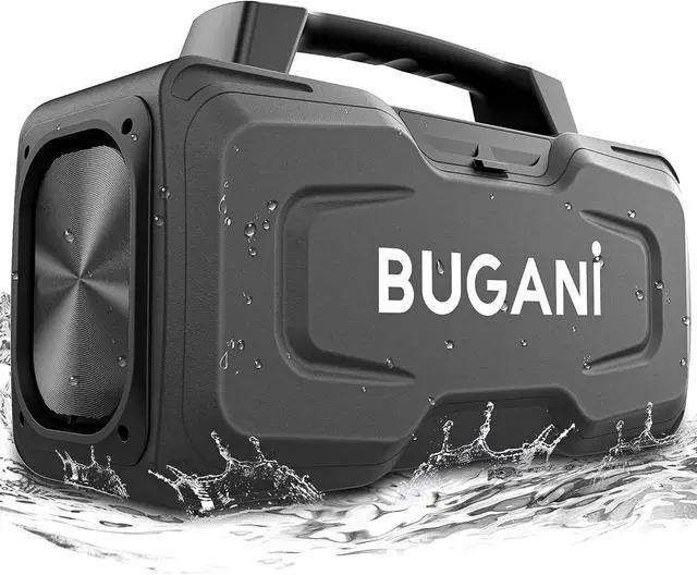 • Powerful Stereo Sound -- BUGANI 80W stereo loud speaker with two 40 watt full-range drivers, which pump out more powerful clear sound and plays the music with less than 1% total harmonic distortion, which makes the M118 loud Bluetooth speaker perfect for any gatherings and the ideal indoor and outdoor speakers to bring sound to life for a fantastically dynamic Audio experience.