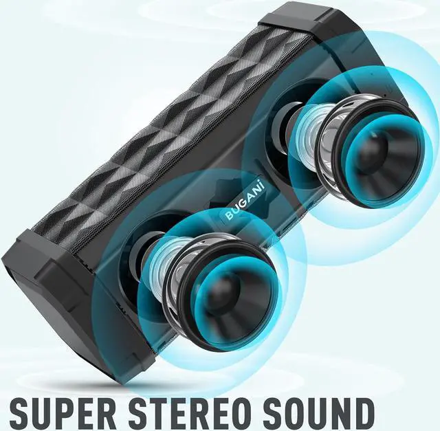 Advanced Bluetooth 5.0 Stay connected with the BUGANI Bluetooth Speaker's Bluetooth 5.0 technology, which provides a stable connection to your devices, including smartphones and computers, up to 100 feet away. This advanced technology ensures minimal interference from other signals, maintaining a clear and consistent audio stream.