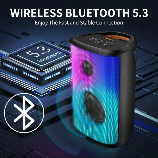 80W Loud Sound & Thunderous BassBUGANI Bluetooth speaker is crafted through a fusion of cutting-edge technology and four decades of audio mastery, letting your ears enjoy high-definition stereo sound anytime, anywhere. Built-in 2" tweeter and 5.25" subwoofer, creating a mesmerizing blend of crisp trebles and resonant bass, immersing you in a concert-like atmosphere. Experience the extraordinary BUGANI loud Bluetooth speakerHear it to believe it.