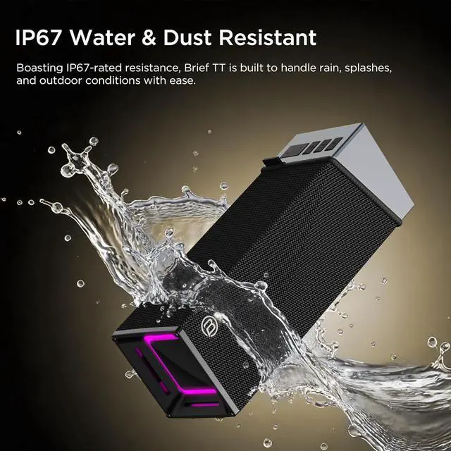 Built for Anywhere with IP67 Water & Dust ResistantRain, splashes, sand, or dustnothing slows it down. With IP67 protection, Brief TT speaker is ready for beaches, poolsides, camping trips, and every journey in between.