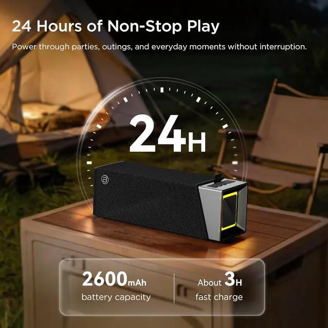 RGB Atmosphere Lighting That Sets the MoodMore than sound this is atmosphere. Dynamic RGB lighting flows with your space, instantly transforming any room, party, or outdoor night into a vivid, immersive experience.