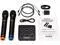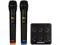 This kit includes one receiver/mixer and two wireless microphones (up to 100 foot range). The easy-to-use receiver/mixer allows you to mix an audio source (such as Bluetooth, 3.5mm aux in, or optical in) and wireless microphone signals.