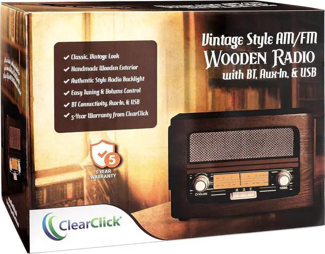 AM/FM Radio with Bluetooth, Aux-In, USB, & Retro Vintage Look (Model No. VR47)