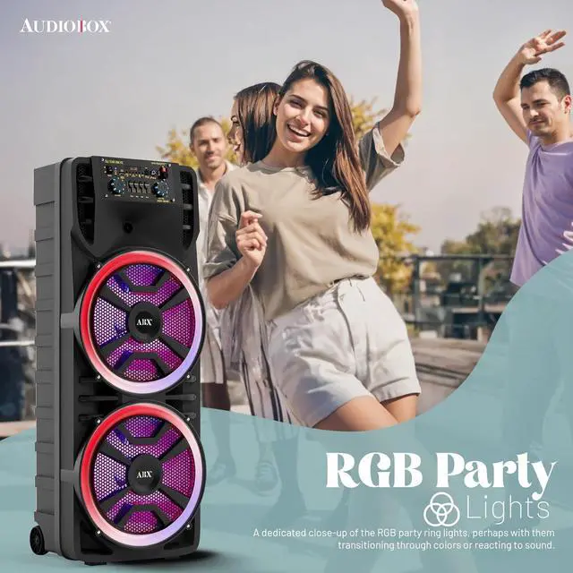 VIBRANT SOUND CLARITY & BASS Dual 12" Woofers: Experience immersive audio with dual 12" woofers that deliver deep, vibrant bass and crystal-clear sound. Ideal for large gatherings, outdoor events, or parties, this karaoke machine with Bluetooth and wireless microphone for adults ensures vibrant audio for any occasion.