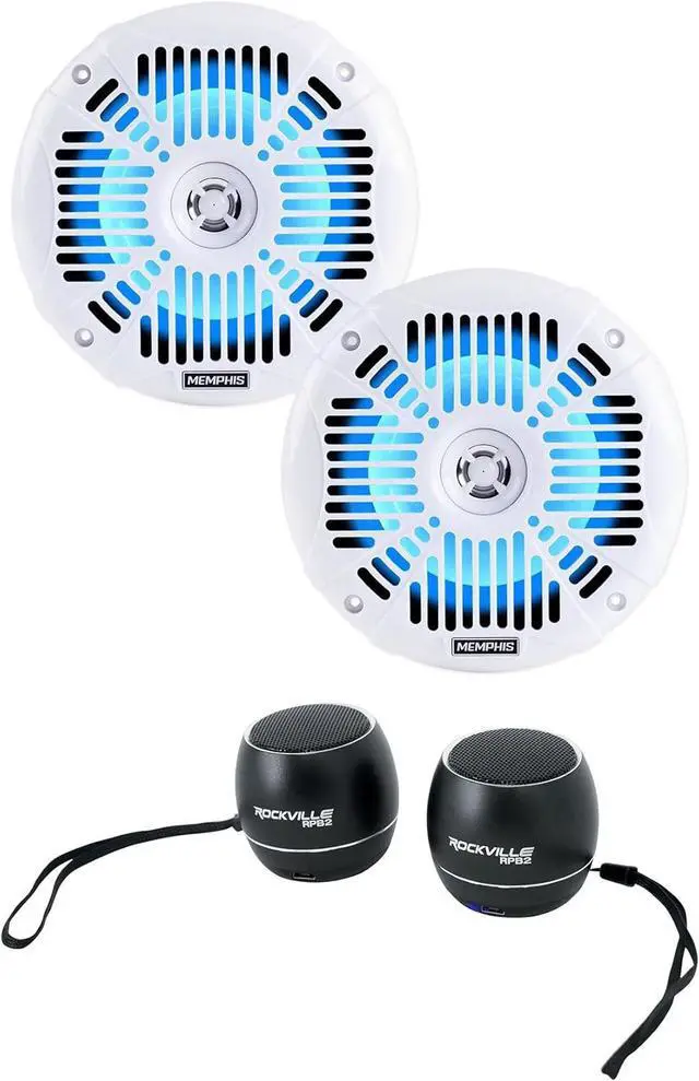 Package Includes: (1) Pair Memphis Audio MXA602SLW 80w 6.5" LED Speakers For Polaris RZR/ATV/UTV/Cart, (1) Pair RPB3-BLACK Handheld Wireless Linking Portable Bluetooth Speakers