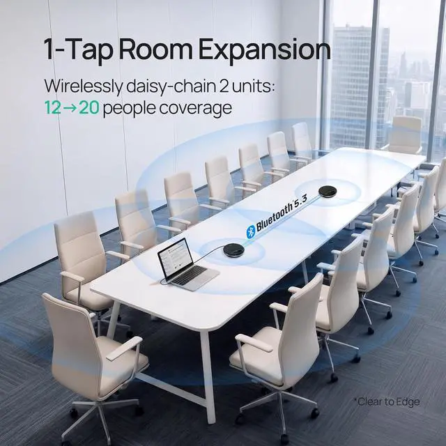 16.4ft Radius: With six microphones and advanced 360° sound pickup technology, it ensures high-quality sound capture from any angle or position, making it ideal for 8-12 person conference rooms.
