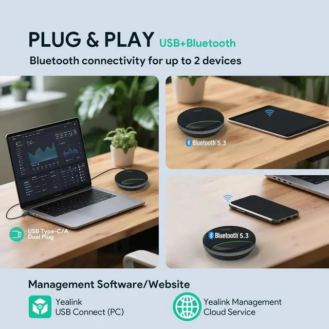 Virtual Bass for Premium AudioA large 50mm driver powers this bluetooth conference speaker, while virtual bass balances music and conference call clarity. Perfect as computer speakers with microphone for hybrid teams.