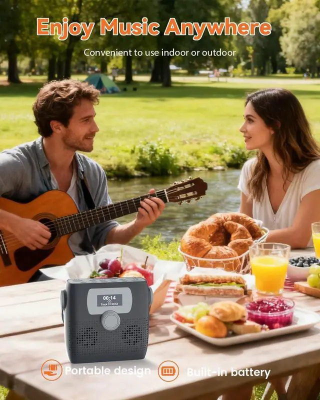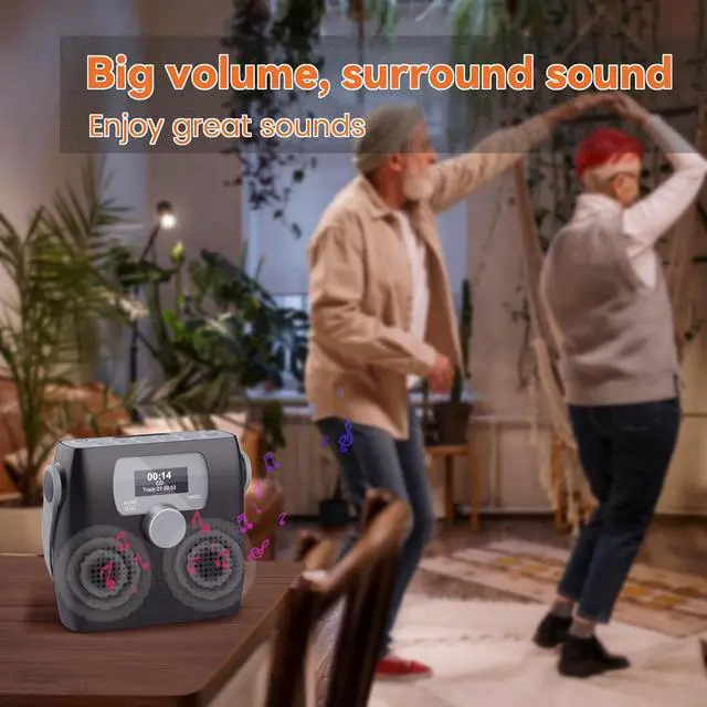 High quality sound and simple design:This portable cd boombox comes with built-in 2 3W high-power speakers, which can provide clear and full stereo sound. LED display, smooth volume dial and simple buttons make it easy to use. The portable design with handle and IPX7 waterproof allow you to be from environmental restrictions. It is a good companion for kitchen, bathroom, cleaning, picnic, camping, walking, running, fishing and hiking, etc